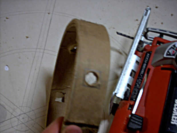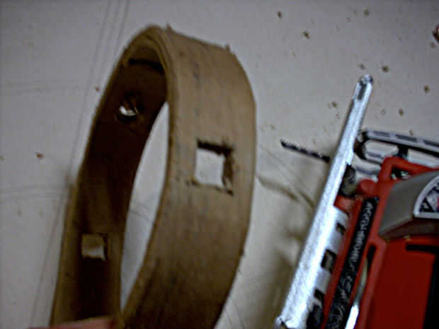 Para hacer esta rueda que necesitaba para poner los tacos a través de la rueda, lo que significa que tenía agujeros, que debían ser cuadrado. Lo hice por 1/2 en el agujero de perforación con mi taladro y cuadratura con mi juego. Tener una referencia para la colocación del pasador hace mucho más fácil a la línea 6 conjunto de agujeros entre 2 anillos.