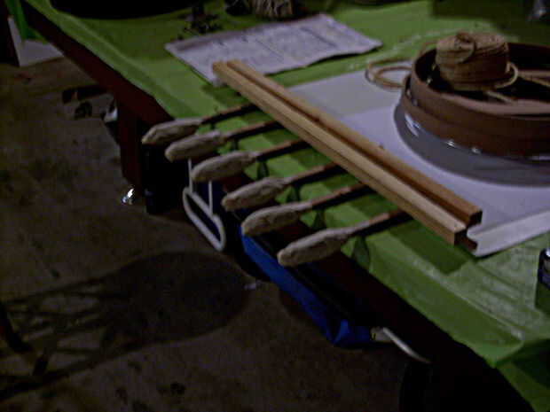 he intentado pintura marrón normal, pero era brillante y parecía realmente cursi, también probé la mancha que no se veía terrible pero realmente demostró los bordes de la cinta adhesiva. Al final puse una fina capa de papel maché sobre la cinta adhesiva y utiliza pintura de arte de acrílico. Usé el color nuez moscado, debido a los tres marrones en el cubo de pintura era la menos brillante y más madera como. También les di un ligero rociado de negro mate para darle cierta textura al color.