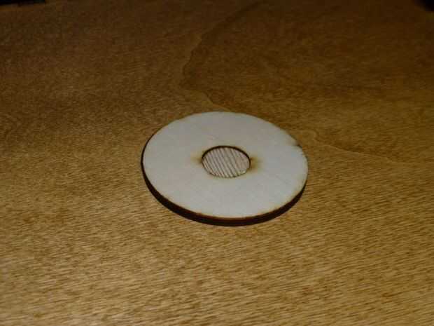 Para fijar el eje pegar una arandela y un círculo en la parte superior del eje.