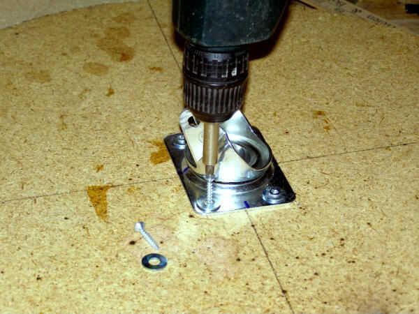 Fije el soporte de montaje al centro de la parte posterior (el lado sin los clavos que se pega para arriba) de su círculo. Utilizar las líneas diagonales que hiciste para encontrar el centro de su círculo como guía y después atorníllelo en su lugar.