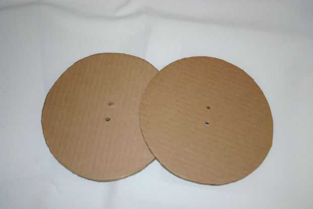 Para los dos extremos, perfore dos agujeros de 1/4 de pulgada--cada uno 1/2 pulgadas desde el centro del círculo.