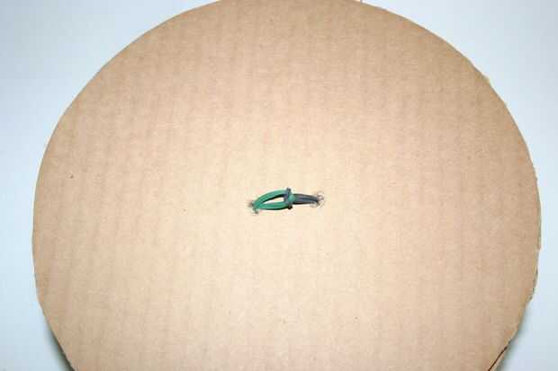 Tirar las gomas por los dos agujeros en un extremo de la rueda.