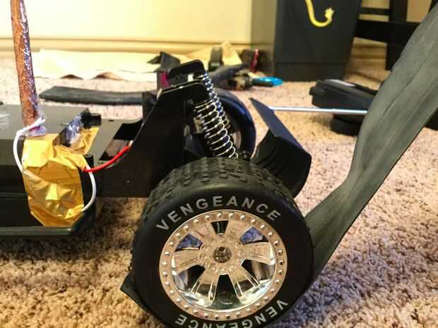 Este modelo es un vehículo basculante 1/10 con dos ruedas delanteras y una tracción trasera; fue derivado de un modelo eléctrico RC Arrma vórtice 1/10 que fue utilizado el chasis de aluminio y quitar toda la espalda, donde él había colocado el motor
