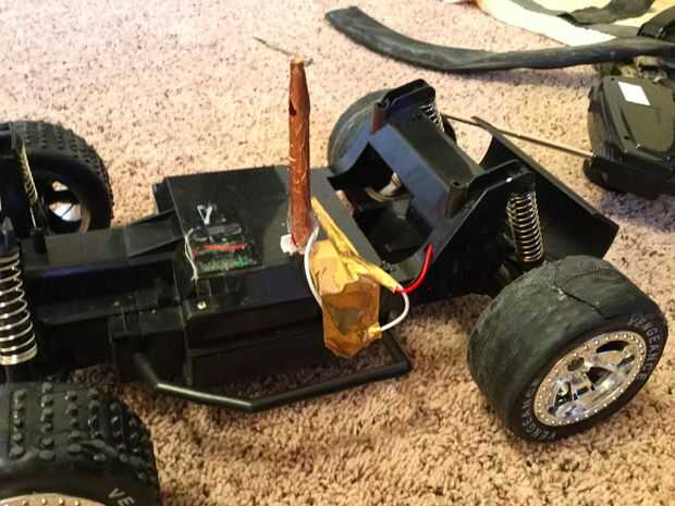 Este modelo es un vehículo basculante 1/10 con dos ruedas delanteras y una tracción trasera; fue derivado de un modelo eléctrico RC Arrma vórtice 1/10 que fue utilizado el chasis de aluminio y quitar toda la espalda, donde él había colocado el motor