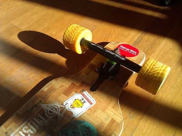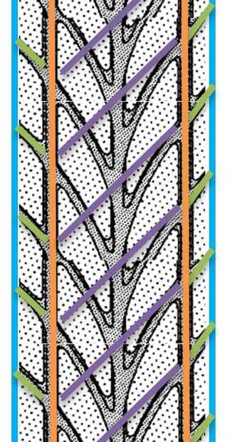 Debido a la manera que esta pisada se convertirá (direccional), el corte es muy específico a un lado de la Junta. Suponiendo que la Junta es boca abajo con el mango hacia el piso, los cortes diagonales deben comenzar en el lado interior y corte hacia arriba. Las otras dos imágenes son guías para ilustrar lo que estoy diciendo. Como se puede ver que las ruedas se duplican.