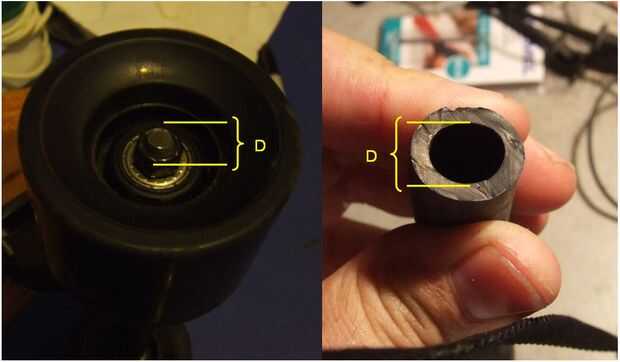 -4-6 pulgadas de tubo de goma - realmente no es necesario que mucho pero es mejor tener un trozo largo para un mejor manejo. El diámetro se explica mejor en la segunda foto de arriba. Básicamente, el diámetro interno de la manguera tiene que ser algo menor que el tamaño de la tuerca. Mayoría de los carros tiene 1/2" pulgadas tuercas por lo que el diámetro interno de la manguera tiene que ser aproximadamente 7/16"