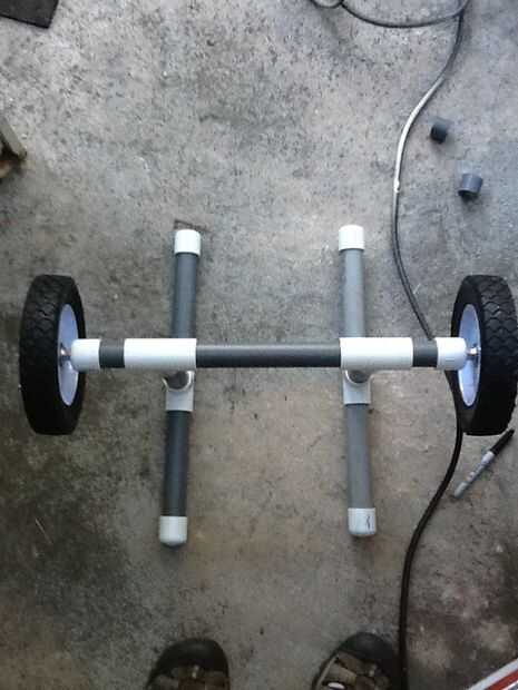 Mientras que buscaba para comprar kayak nuevo, comencé a pensar en los accesorios y complementos para bricolaje. Una cosa que quería hacer era construir un carro de kayak para cuando hay una distancia del coche al agua. Fue mera coincidencia que el d