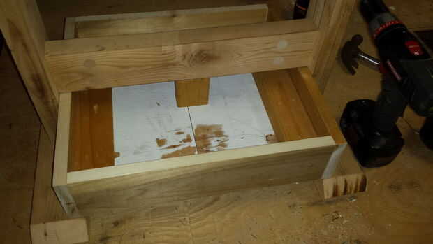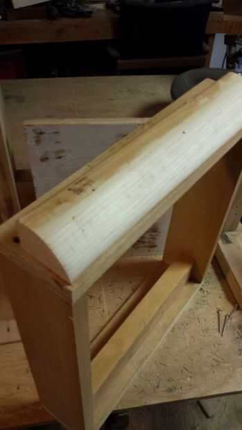 Primero quité los tres tornillos que sujetan una de las calas en su sitio. Yo poner la mesa en mi sierra a un ángulo de 45 grados y mi guía al otro lado de la hoja. Esto me permitió recortar el interior esquina en la parte inferior de la tablilla. Tomé la Cala a mi lijadora de banda y terminó de redondear la Cala con un cinturón de 80 grano. He reinstalado la Cala con los tres tornillos e hizo lo mismo a la segunda Cala. Luego volver a colocar el cuadro en el soporte y colocar el tablero flotante en su interior. El soporte ahora iba arriba y abajo tan fácilmente que tuve que cortar un bloque largo de 3 pulgadas de madera para mantener las ruedas hacia abajo mientras trabajaba en él.
