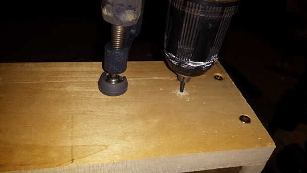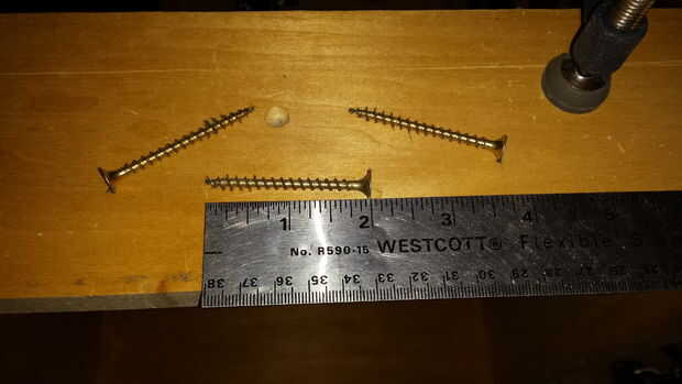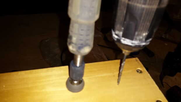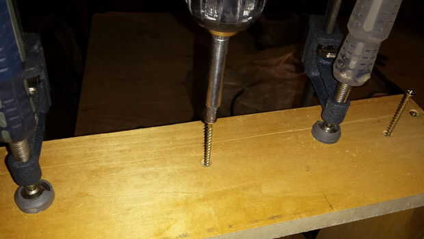 Con mi taladro y un 1/8 de pulgada broca taladré orificios, luego contador les hundido y condujeron en tres tornillos de 2 pulgadas con mi taladro y una broca.