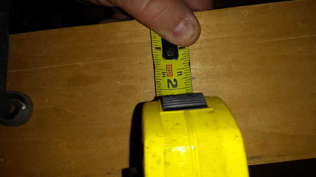 Primero me encontré con una longitud de dos por cuatro que había sido cortado hasta poco menos de tres pulgadas de ancho y decidió sería mis calas. Tomé mi gramil y póngalo en una pulgada. Decidido que medida basada en la altura de las ruedas que había comprado que son dos y media pulgadas de alto, la altura de los pies de la base que es una y media pulgadas, el grosor del tablero flotante que sería cuarto de tres pulgadas y la altura que quería levantar el pie que estaba también tres cuartos pulgadas. Fijando el borde inferior de las calas una pulgada arriba de la parte inferior de la caja que establecería a dos pulgadas del suelo. Dado que el tablero flotante será tres cuartos de pulgada, el espesor de la Junta me dará mi pulgadas de tres cuartos de la elevación cuando presiona los extremos con las abrazaderas.