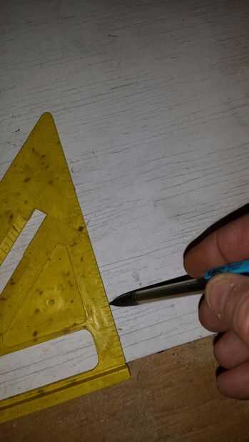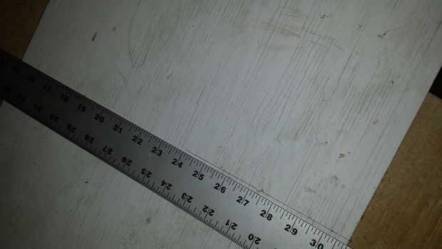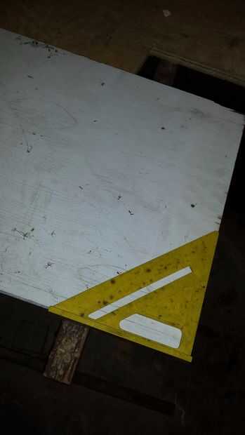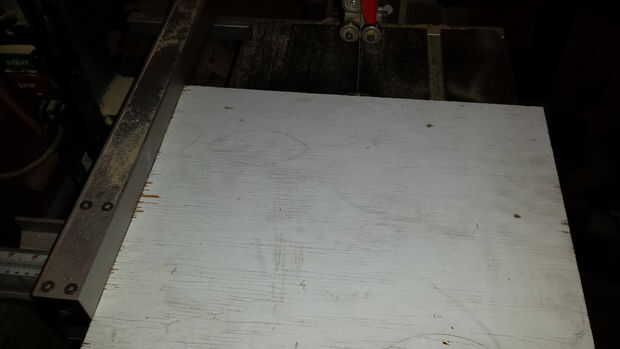 Tenía un trozo rescatado de madera contrachapada de pulgada de tres cuartos que había sentado de unos 12 años que alguien había pegado un montón de pasto con caliente pegamento como un comienzo en un ferrocarril modelo y nunca ninguno fue más allá. Usé mi plaza rápida y comprobar para asegurarse de que el borde era cuadrado. Me mide más de dieciséis y un octavo pulgadas y una marca. Usé mi plaza rápida para hacer una línea y luego usa un palillo de la yarda para extender la línea a través de la Junta. Yo entonces cortar ese pedazo de junta con mi Sierra pequeña habilidad asegurándose de cortar hacia fuera de la línea. Entonces dio vuelta a 90 grados de la corte y había medido hacia fuera de catorce y un cuarto pulgadas e hizo una nueva línea y los residuos de con mi habilidad de sierra mientras asegurándose de cortar una vez más hacia el exterior de la línea. Después de comprobar para asegurarse de que la mesa era cuadrada, I establecer la valla de mi sierra de ocho pulgadas y corte la tabla por la mitad. Esto me dejó con dos tableros eran de ocho pulgadas de ancho y catorce y un cuarto pulgadas de largo.