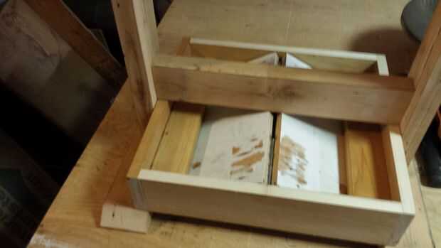 Yo había previsto el soporte de su lado y la Junta flotante dentro de la caja. Después de configurar el soporte detrás en sus pies he probado presionando hacia abajo en el tablero con bisagras para ver cuán fácil levantar el stand sin la sierra. La mano que ves en la uno foto es de mi hijo intentarlo hacia fuera. Funcionó bastante bien subiendo pero porque salí de la Plaza de grapas que en posición y no es fácil soltar el soporte hacia abajo.