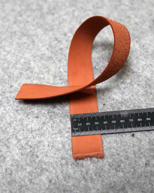 Empecé echando un vistazo donde podría conseguir el corte más largo para la parte de correa de la bolsa. Me las arreglé para cortar un cinturón de 17x1.5 pulgadas. Sin embargo, si mi remanente de cuero habría permitido, habría cortado el cinturón unas pulgadas más de largo.