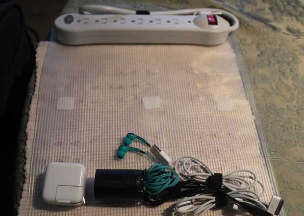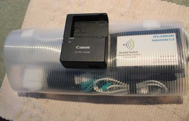 Mi abultado viejo Canon cargador nunca encaja en cualquier lugar, así había pegado un trocito de Velcro, una alondra y había pegado en el frente de todo. Aunque es un poco superflua. Las cosas que realmente necesito son recogidas dentro de mi Roll Up cargador, todo bonito y ordenado.