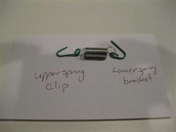 Puse una permanente presión a la pinza de resorte superior y el soporte inferior de resorte a cada extremo del resorte (no para todos los tres muelles). Esto llamo la Asamblea de primavera.