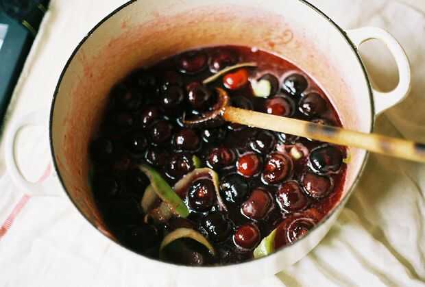 Ruibarbo mermelada de cereza (3 / 7 paso)