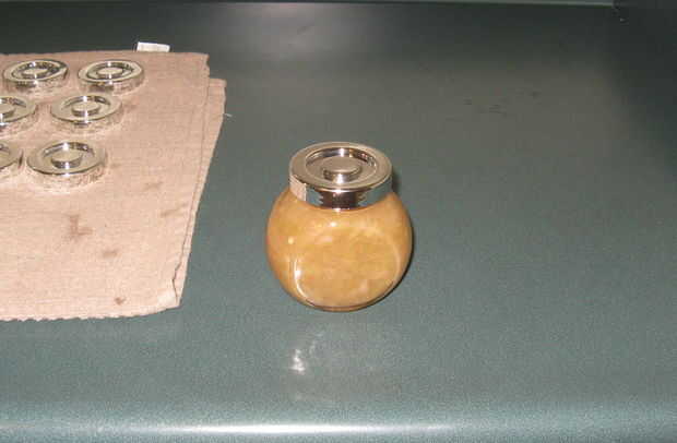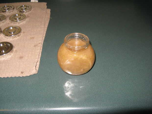 Usando el embudo agregar la mermelada a la botella para justo debajo el tornillo en el borde.