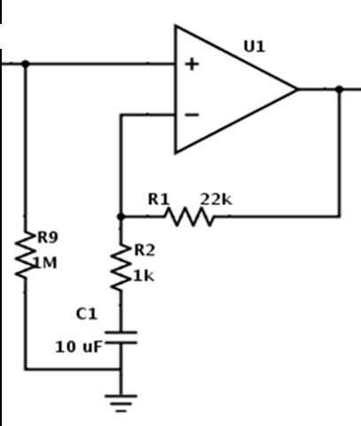 La etapa de preamplificación de micrófono se utiliza para amplificar la señal de ruido a un nivel donde realmente podemos procesar. La ganancia de esta parte realmente depende de la frecuencia de la señal entrante. En términos simples, esta etapa actúa como un amplificador de ganancia unidad para DC y un amplificador sin inversión con ganan R1/R2 (22/1 aquí) para todas las otras frecuencias. Esto es otra vez para reducir el componente DC de la señal de cancelación de ruido. El problema de DC es que causa un desplazamiento en la señal de cancelación de ruido que causa el sistema no funcione correctamente.