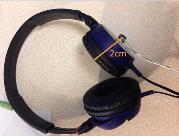 Primero medimos la distancia entre el micrófono y la oreja (2cm). Luego calcula cuánto tiempo una onda de sonido tarda en recorrer esta distancia usando: