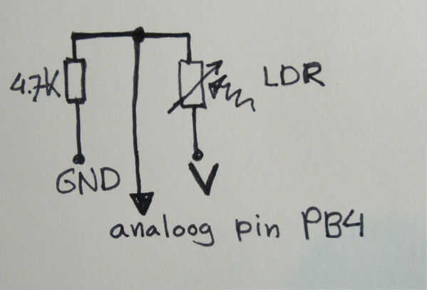 Uso de la luz se hace por el Resistor dependiente de luz, en combinación con una resistencia fija.