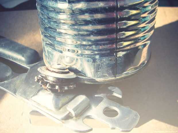 Todavía necesita un poco de brío; Añadí un corte hacia abajo puede para resonancia y utiliza el mismo agujero del tornillo que sujeta la tarjeta, (pernos más largos y la tuerca).