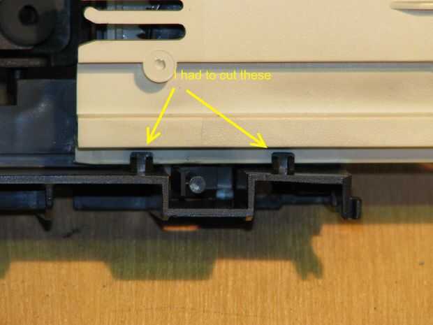 Retire la bandeja. Puede salir si usted doblar la mitad hacia arriba, o usted puede necesitar cortar un clip de plástico o dos con cortadores de alambre. Una vez que termines, sería como la cuarta foto.