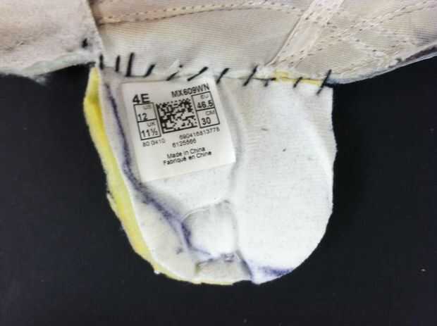 6. mirar contra el cuerpo de la zapata. Asegúrese de que su lengua será capaz de cubrir la zona marcada en el cuerpo del zapato. Ajuste más según sea necesario, yo lo hice.