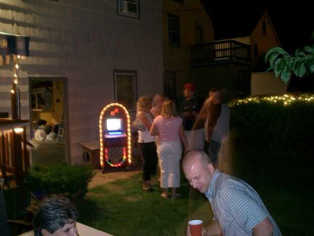 MP3 juego de Software de Jukebox, yo simulador de jukebox (http://www.jukeboxsimulator.com), pero otro software jukebox podría funcionar bien también.