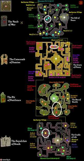 Como se muestra en el siguiente mapa donde se encuentra cada monstruo en el! zona de pueblo bárbaro.
