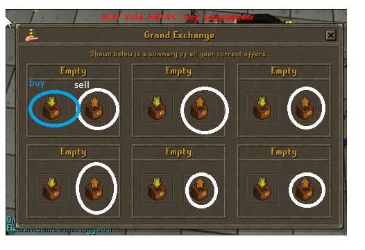 El G.E. y haga clic en a la gente en azul cercano para intercambiar. Una vez que aparece la pantalla de cambio haga clic en la caja de tesoro de venta (uno a la derecha).