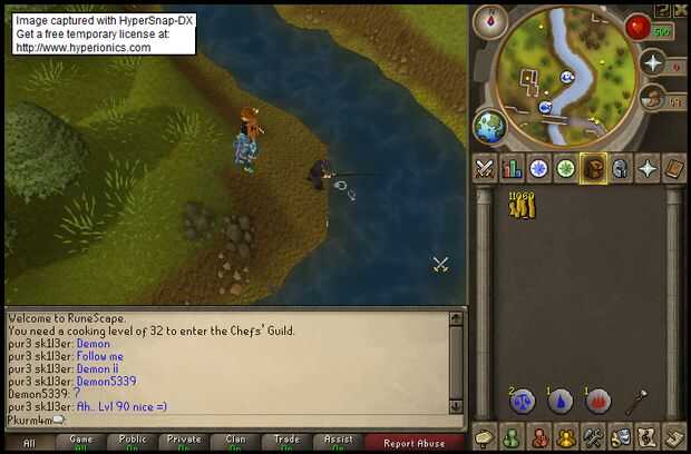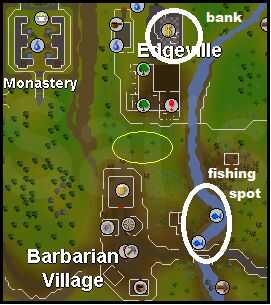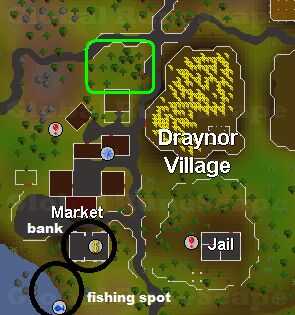 En Draynor Village se puede utilizar ya sea una red pequeña que se coge camarones y anchoas (que no son realmente buenas para subir de nivel) y caña de pescar y cebo y coge haring y sardeans.