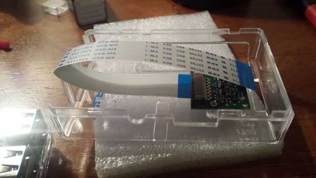 ProTip: no conecte la cámara a la raspi todavía. Los ángulos son raros y es más fácil si la cámara ya está atornillada en el caso.