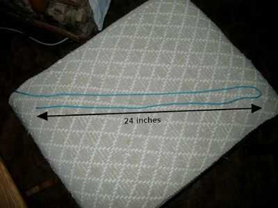 La longitud de la bahía no es crítico. Luego de experimentar, 24 pulgadas parecía una buena forma de empezar, pero los nudos necesitan preparación y longitudes exactas se ajustarán más tarde.