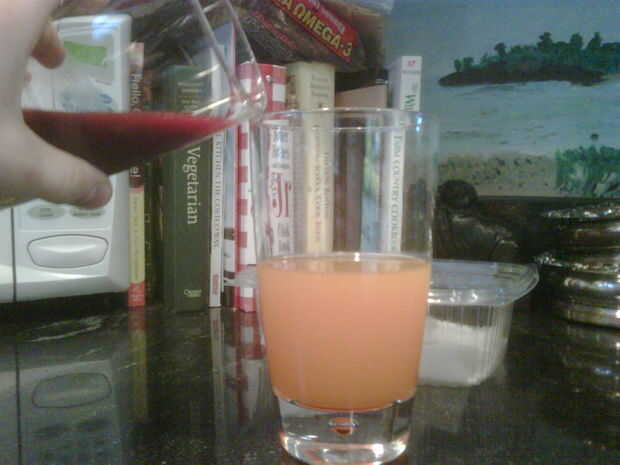 Verter de la coctelera. (Si tienen desordenados los lados del vaso, verter en una taza nueva.)