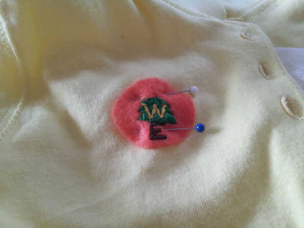 Cosido sobre una camiseta amarilla que pude comprar en el Dollar Tree. Ahora había estado buscando una camisa durante algún tiempo y realmente compró uno para $14 en Osh Kosh B'gosh pero cuando encontré uno en el árbol del dólar que decidí ahorrar que uno para uso regular y coser en la fue de $1. También vi uno de $6 en Target o Walmart. Básicamente tienes que comprar la temporada correcta, fue de compras demasiado pronto y no pudo encontrar un amarillo con cuello camisa en cualquier lugar y ahora por supuesto encontrarlos por todas partes!
