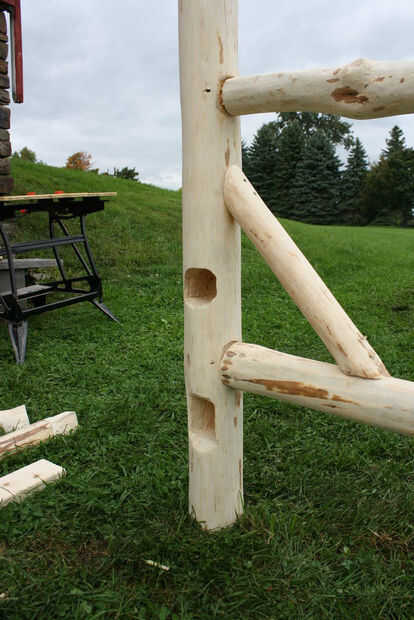 Cincelado hacia fuera debajo de ellos una forma de "U" así que abrazó el tronco debajo de las mejores para pegar y atornillar.