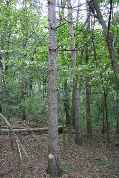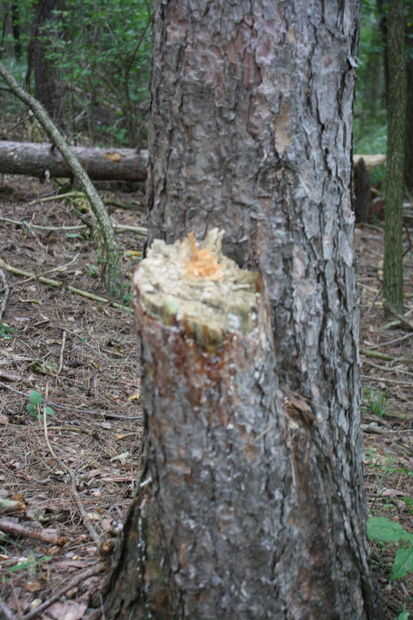 En mi cama, utiliza un árbol que en la base como mi árbol "medio" por lo que no era ese grueso y no mata el árbol (ver en la imagen). Tuve que cortar con un hacha como el ángulo no me permitiría a mi sierra por la parte posterior.