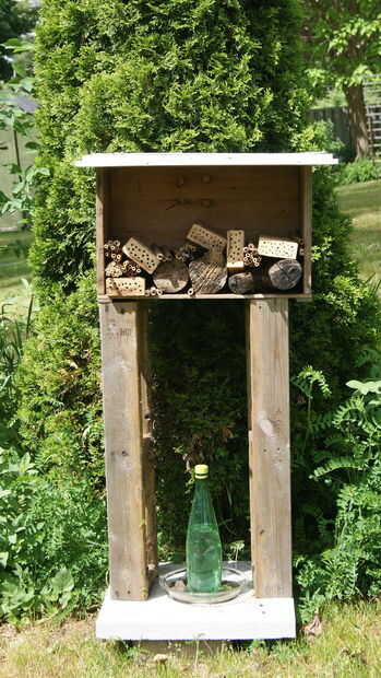 Pongo esto juntos en unas pocas horas en su mayoría con materiales reciclados. Lo configuro en el final de la mañana y unas horas más tarde vi dos especies de abejas silvestres usarlo!