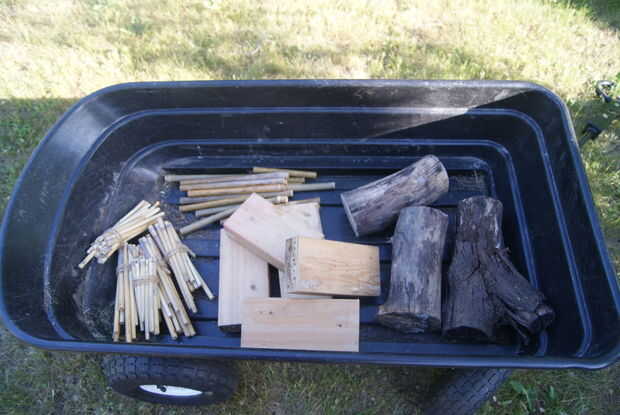 • bloques de madera sin tratar (pero no cedro o secoya) con los agujeros perforados en los