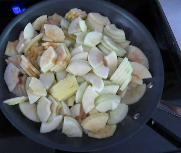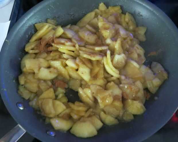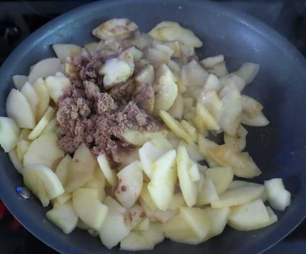 En una sartén muy grande, derretir la mantequilla en el aceite sobre fuego medio alto. Añadir las manzanas y cocinar, sacudiendo y moviendo ocasionalmente, hasta que se ablanden un poco, unos 5 minutos.