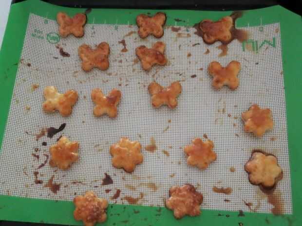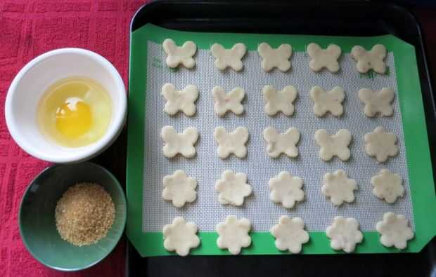Si tienes recortes extras pincel con el huevo y espolvorear con azúcar gruesa, hornear hasta que estén doradas, dependiendo del tamaño puede tomar entre 10-20 minutos.