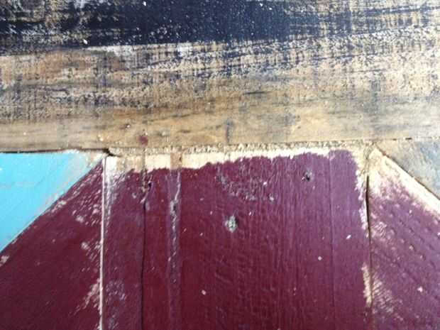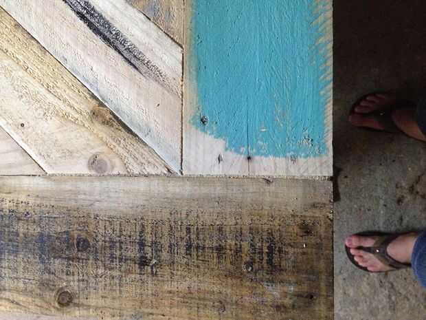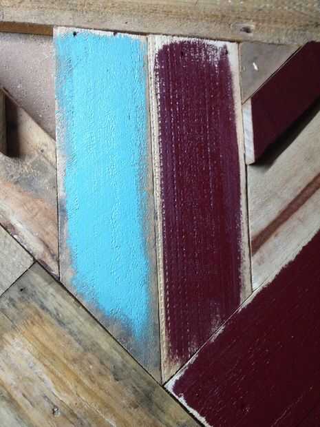 2. Asegúrese de que algunas piezas son totalmente cubiertas, mientras que otros son sólo ligeramente pintado. Dejo algunas con madera expuesta demasiado. La idea es que la madera fue reclamada por lo tanto utilizado por lo es el look que vamos para.
