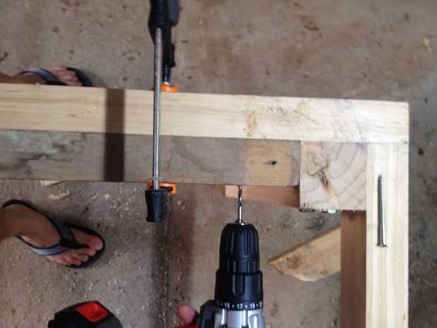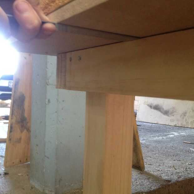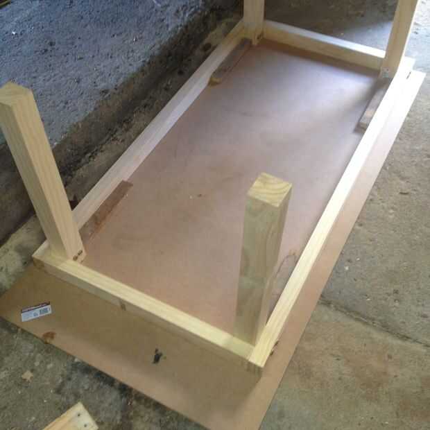 2. puedes elegir aquí - en orden para la tapa de tabla para ser removible para facilitar el movimiento, añadió longitudes de 4 x 200 m m de madera en el interior del marco y atornilladas al tablero de MDF de debajo. Cambié de opinión más tarde y añadido 4 soportes de 40 mm x 40 m m L número para hacer el mismo trabajo. Puede hacer cualquiera.