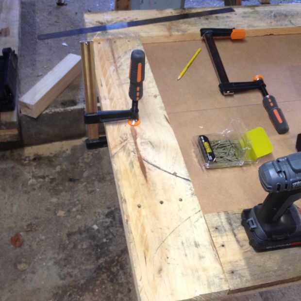 3. Tome sus tornillos de 40mm y fije las piezas hasta la hoja MDF. No pero puede utilizar algún pegamento para madera para ayudar en esta fijación de tesis. Es buena práctica y dar una solución mejor, más estable como el tornillo puede trabajar flojo con el tiempo.