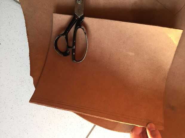 Después de guarnición con una regla, cortar el cuero con una tijera potente. Otra vez, por el grosor de la piel, esta parte fue realmente muy dura, pero la tijera fuerte me ayudó a salir.