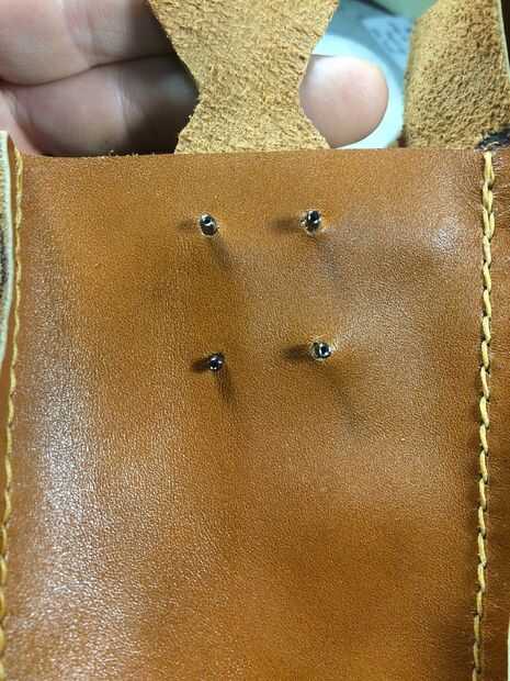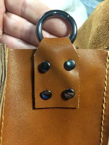 corté este hardware de una nueva bolsa de tienda de segunda mano. La cremallera fue rasgada y era inusitado. Tomo mi correa de sujeción y dóblalo por la mitad luego marcar y perforar los 4 agujeros que esto asegura que alinean a ambos lados de la escuadra. Luego coloque la correa donde quiere y marcar y perforar los agujeros en la escuadra. Con la correa dobla en mitad, muesca los bordes para acomodar el anillo ya que es más ancha que el anillo. Es más ancho en el punto seguro para distribuir el peso de la bolsa. Introduzca el anillo en la correa doblada y poner a un lado en su interior y un lado en el exterior de la escuadra, insertar y asegurar sus remaches a través de los agujeros alineados