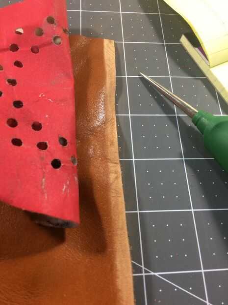 En este momento me marca todos mis líneas de pegamento para que no se donde no pertenecen. Cemento las manchas de la cara buena y no vendrá por el lado carne. Luego la arena y rayar las superficies acabadas todas para encolar. Esto ayuda en la penetración de pegamento y adherencia