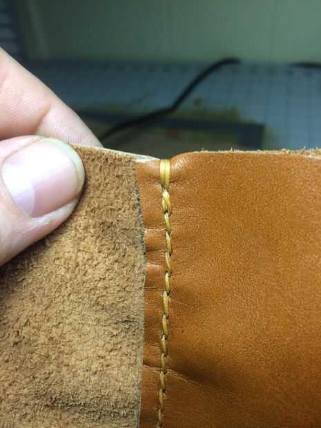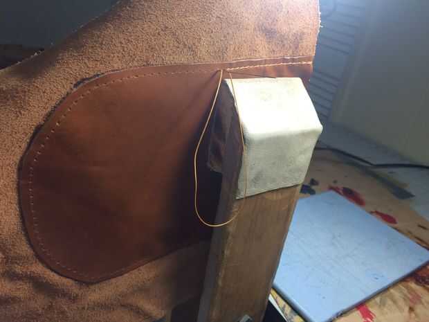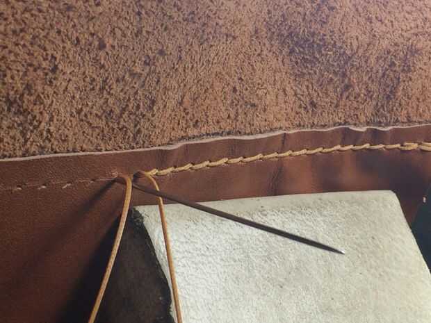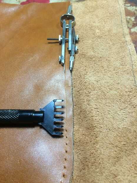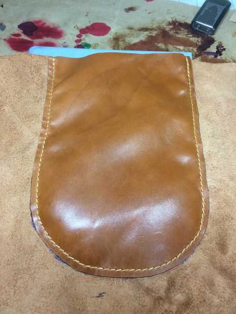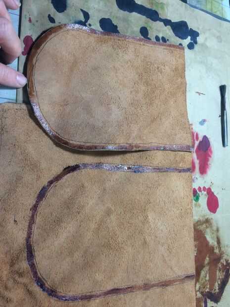 Luego aplicar pegamento recomendable utilizar mfg indicaciones para el marcado de áreas y fijar cuidadosamente el bolsillo en el lado de carne de la pieza de divisor (punta::: Algunos cementos rasgan la piel antes de venir arrastrado. Ser muy cuidadoso cuando se les pegue juntos. Tómese su tiempo) que cura y luego marca una línea de puntadas, su agujeros y silla de montar la puntada todos juntos. No tire de los puntos demasiado apretados porque esto puede causar arrugas en la línea de puntada. También agregar un lazo extra en las esquinas superiores para mayor durabilidad en zonas de estrés.