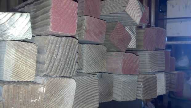 Cuando termines con sus cortes rectos, usted necesita para asegurarse de que usted tiene un montón de 16 mensajes 4 pies de largo y un montón de 16 posts que 2 pies de largo.