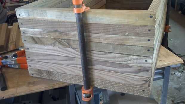 Utilice un pedazo de madera y un martillo que golpee ligeramente los lados en su lugar, incluso con otros.